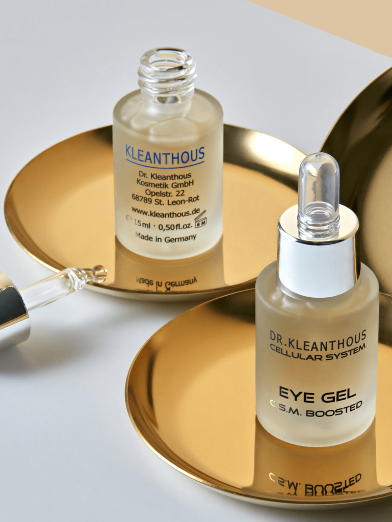 Eye Gel của Dr. Kleanthous là dòng sản phẩm chăm sóc vùng mắt cao cấp đến từ Đức, ứng dụng công nghệ độc quyền Cell Supporting Molecules (C.S.M.) – hoạt chất có khả năng truyền tín hiệu trực tiếp đến tế bào, hỗ trợ quá trình tái tạo và phục hồi làn da mỏng manh quanh mắt.